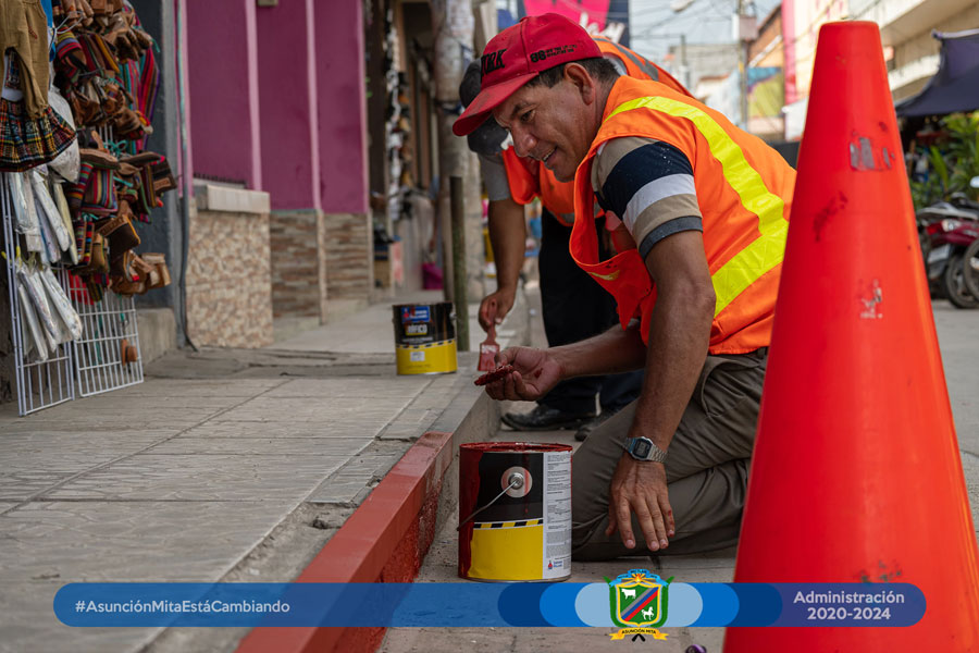 Trabajos de señalización vial en las aceras del Barrio San Sebastián