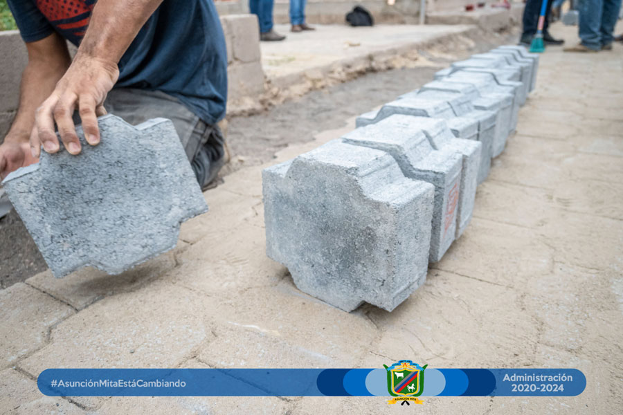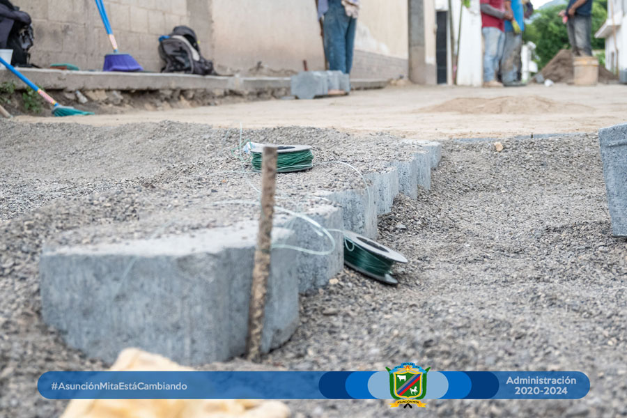 Fase de colocación de adoquín en la 3ra avenida de la colonia Adesmi