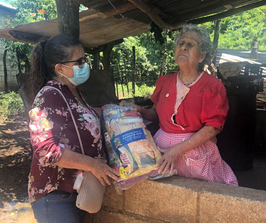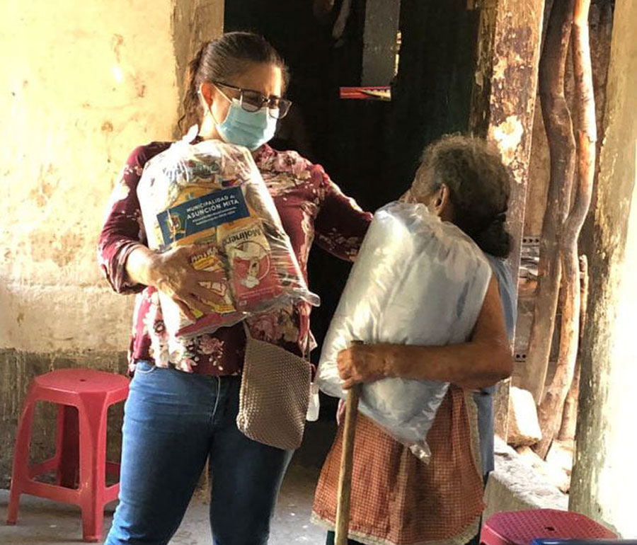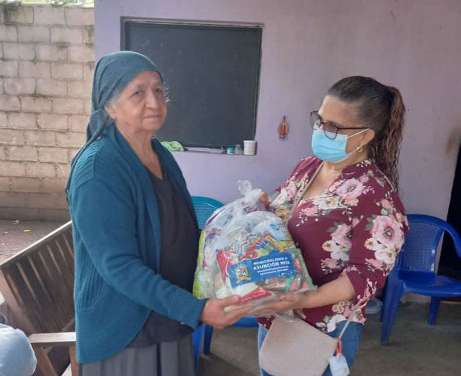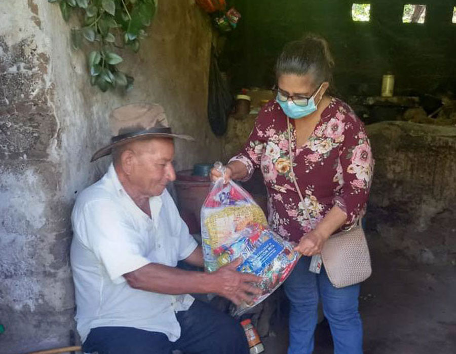 Entrega de bolsas de alimentos a adultos mayores de escasos recursos