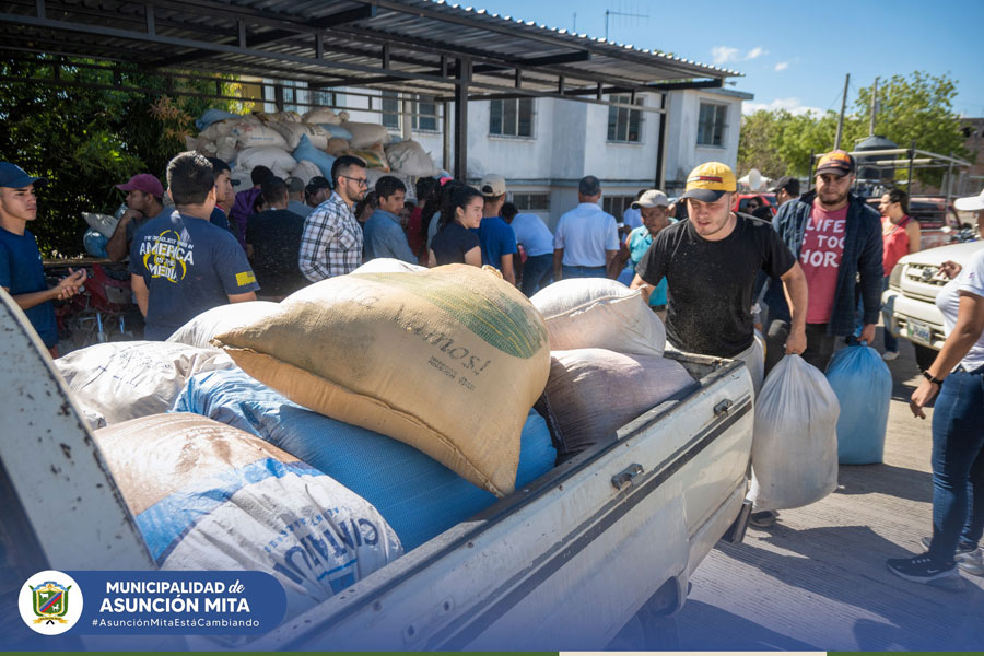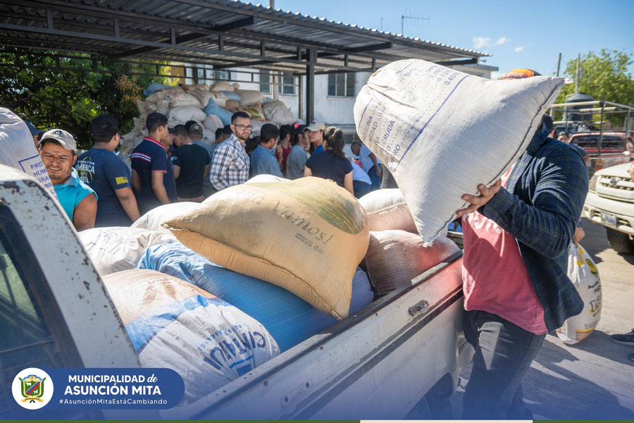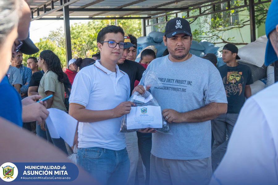 Entrega de bolsas de cemento a los vecinos de la comunidad de San Miguelito