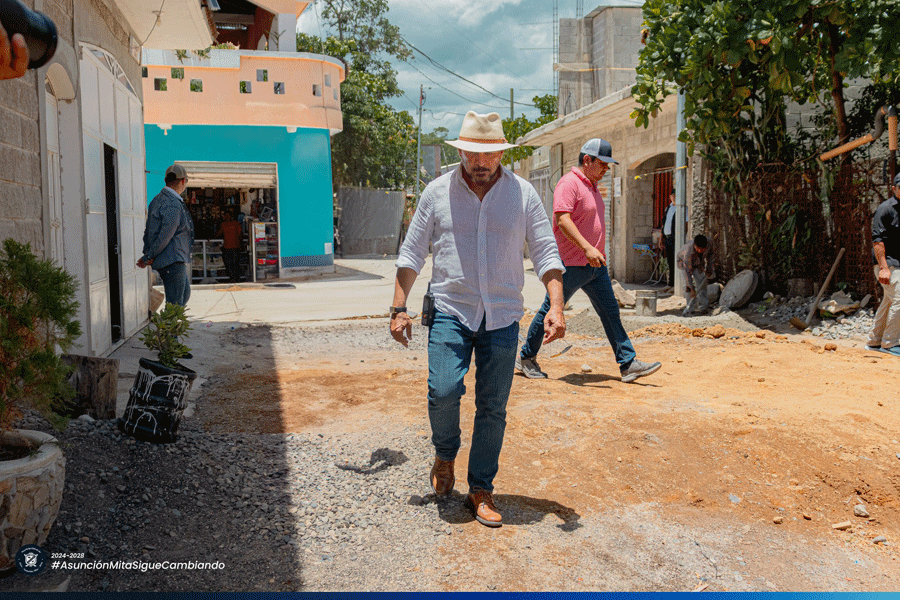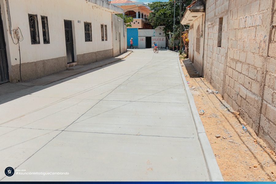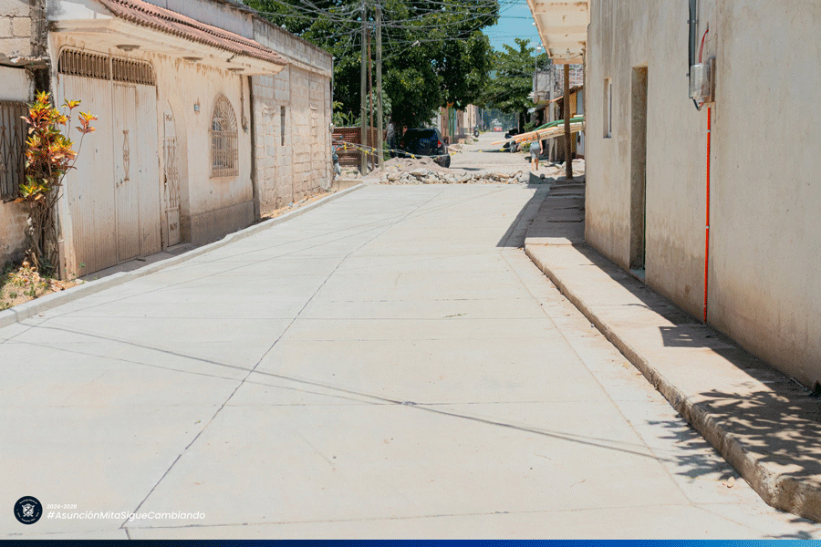 Avance de pavimentación realizada en la entrada en la colonia “La Unión”