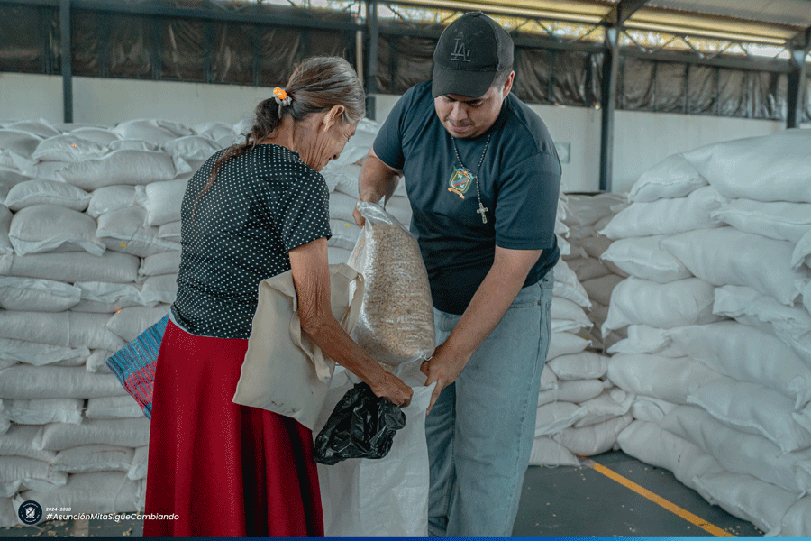 Entrega de bolsas de cemento a los vecinos de la comunidad de San Miguelito
